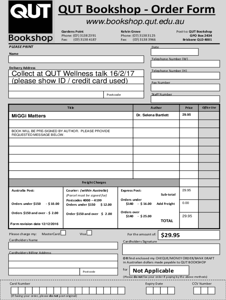 Students, faculty, and staff of Queensland University of Technology (QUT) are required to file qut bookshoporder form when ordering books or items from the QUT bookshop.
