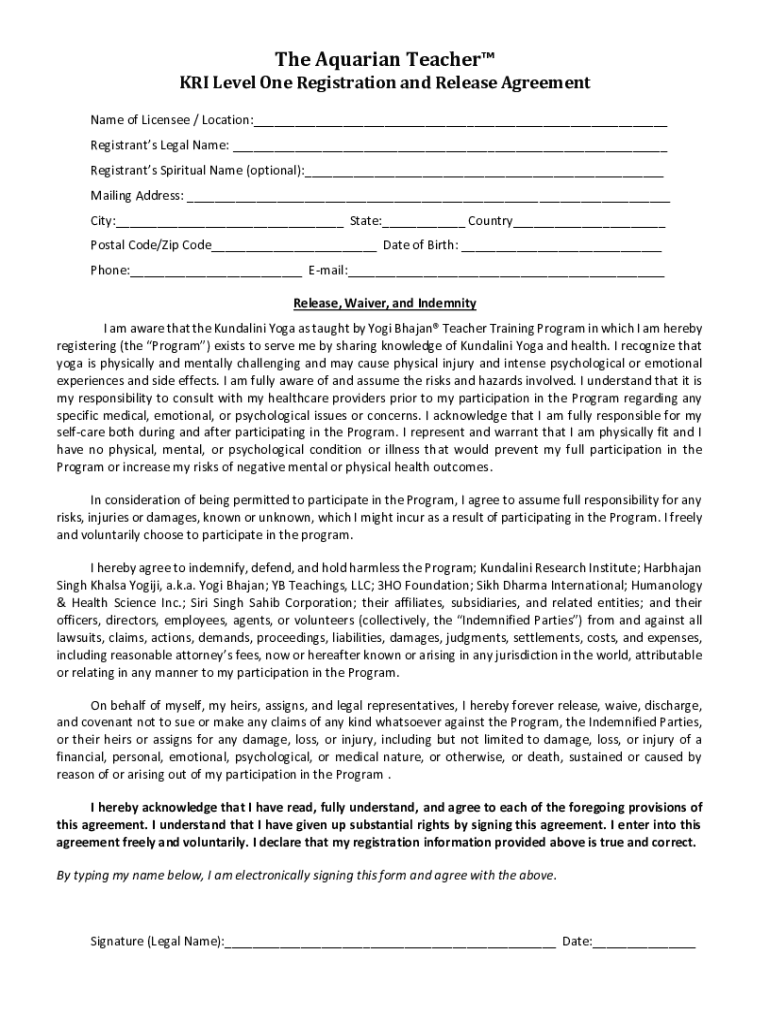 THE AQUARIAN TEACHER MRI Level 1 International Kundalini Yoga Teacher Training Certification Congratulations! You are taking the first step in a potentially life-changing journey to be a Kundalini