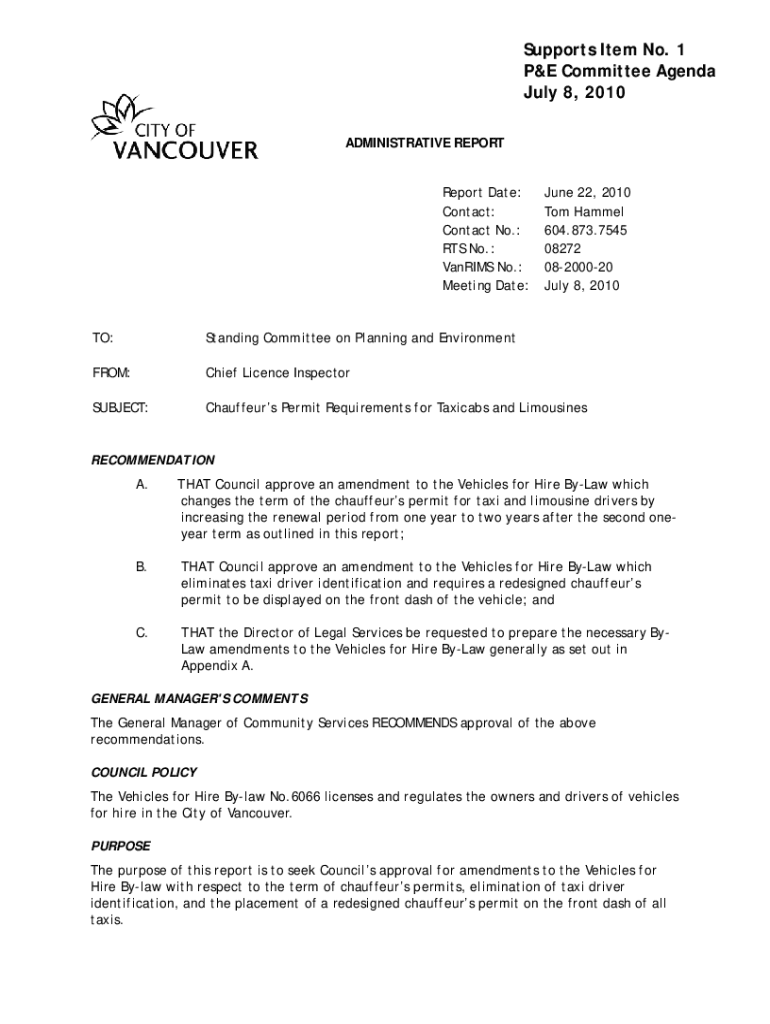 Supports Item No. 1 P&E Committee Agenda July 8, 2010, ADMINISTRATIVE REPORT Date: Contact: Contact No.: RTS No.: Varies No.: Meeting Date:June 22, 2010, Tom Hammer 604.873.7545 08272 08200020 July