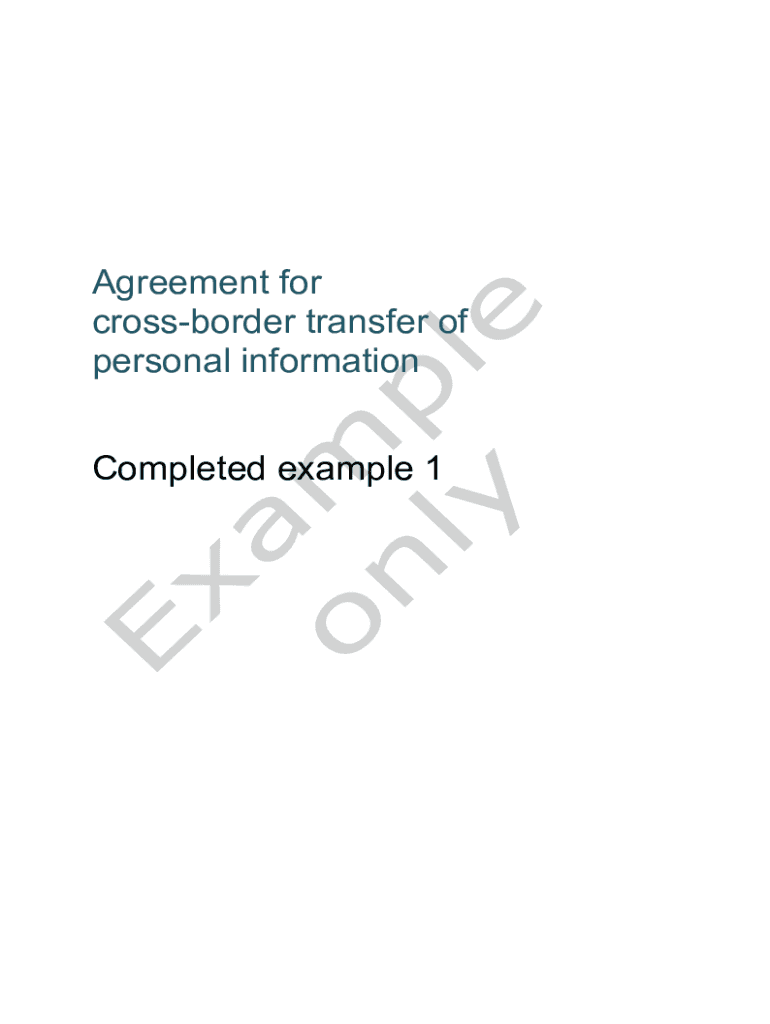 Agreement for cross border transfer of personal information Completed example 1About this completed example agreement The Office of the Privacy Commissioner has filled out the following agreement