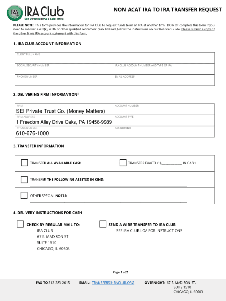 Get the free NON-ACAT IRA TO IRA TRANSFER REQUEST - The IRA Club