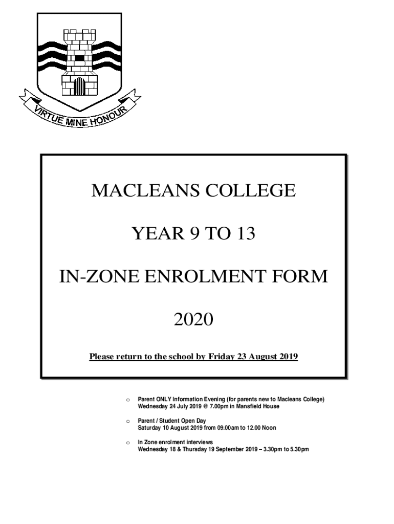 Get the free Macleans College Year 9 to 13 In-zone Enrolment Form 2020