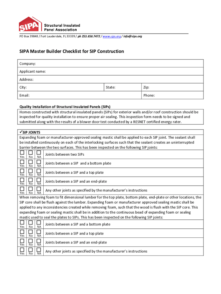 POBox39848 / Fort Lauderdale, FL 33339/ph253.858.7472/www.sips.org/ info@sips.orgSIPAMasterBuilderChecklistforSIPConstruction