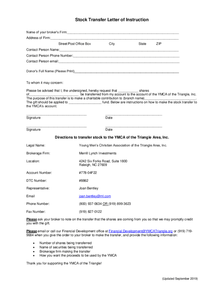 Stock Transfer Letter of Instruction Name of your brokers Firm:___ Address of Firm:___ Street/Post Office BoxCityStateZIPContact Person Name:___ Contact Person Phone Number:___ Contact Person email:___