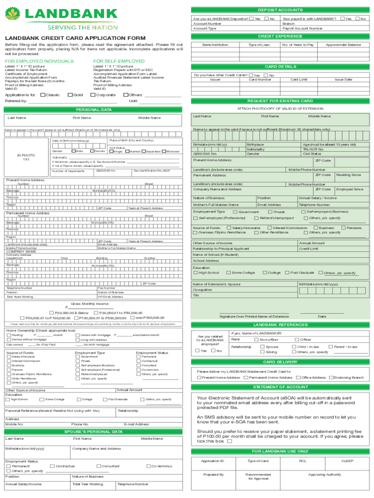 Are you a SANDBANK Depositor? Account Numerous payroll is with SANDBANK? Account TypeCREDIT EXPERIENCEBefore filling out the application form, please read the agreement attached.