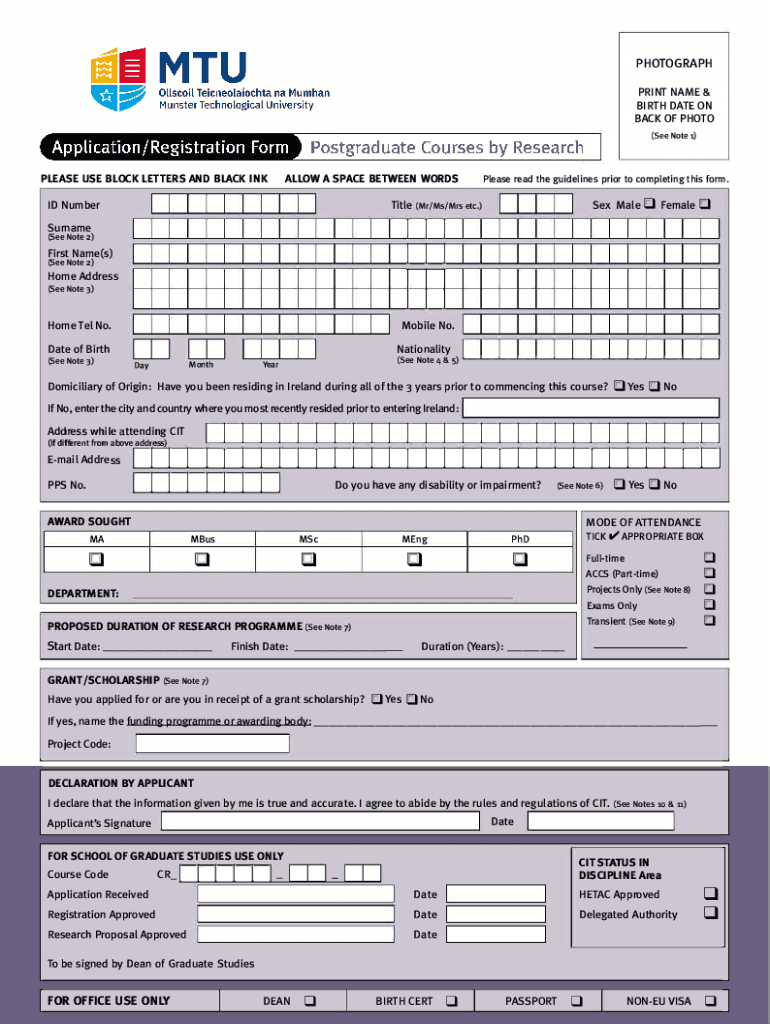 Any student who wishes to enroll in a postgraduate program at CIT needs to fill out the postgrad registration form.
