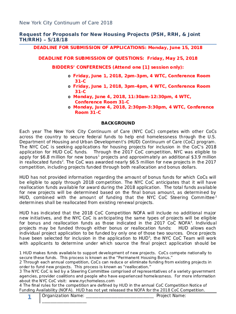 Template NYC Coalition on the Continuum of Care Request for Proposals instructions
