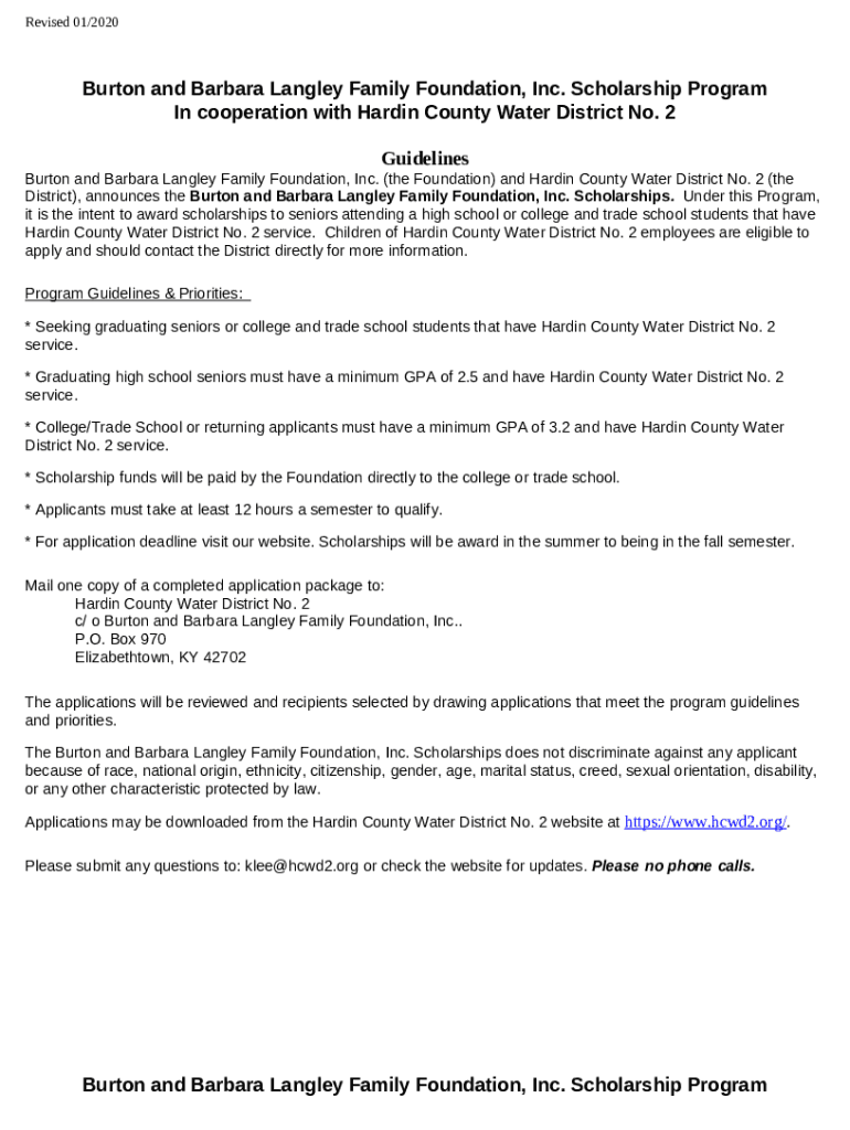 Instructions for the form Burton and Barbara Langley Family Foundation Inc. Scholarship