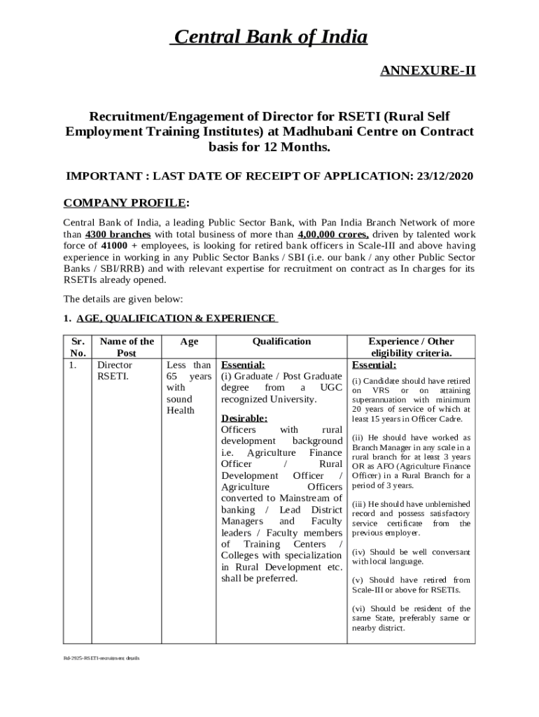 Frequently asked questions about the form Recruitment of Director for RSETI (Rural Self Employment ...