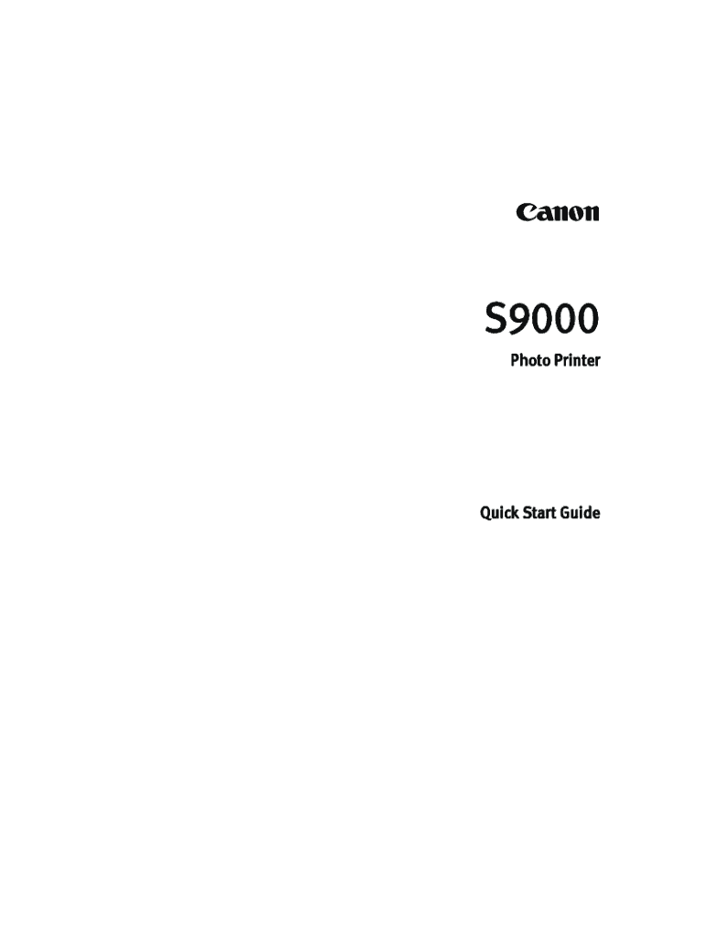 S9000_SG.book Page i Friday, November 2, 2001 12:54 PMS9000 Photo PrinterQuick Start GuideS9000_SG_Manual.qxd11/6/0111:29 Rampage 1Quick Start Guide Canon U.S.A., Inc. One Canon Plaza, Lake Success,