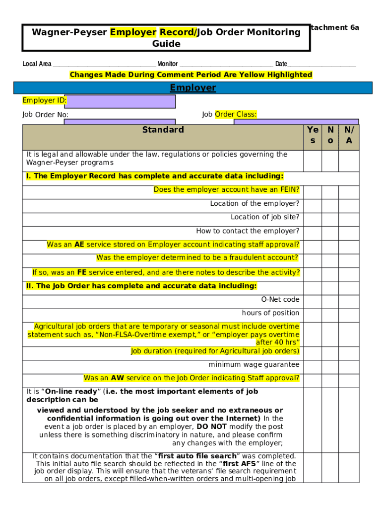 Wagner-Peyser Employer Record/Job Order Monitoring Guide template instructions