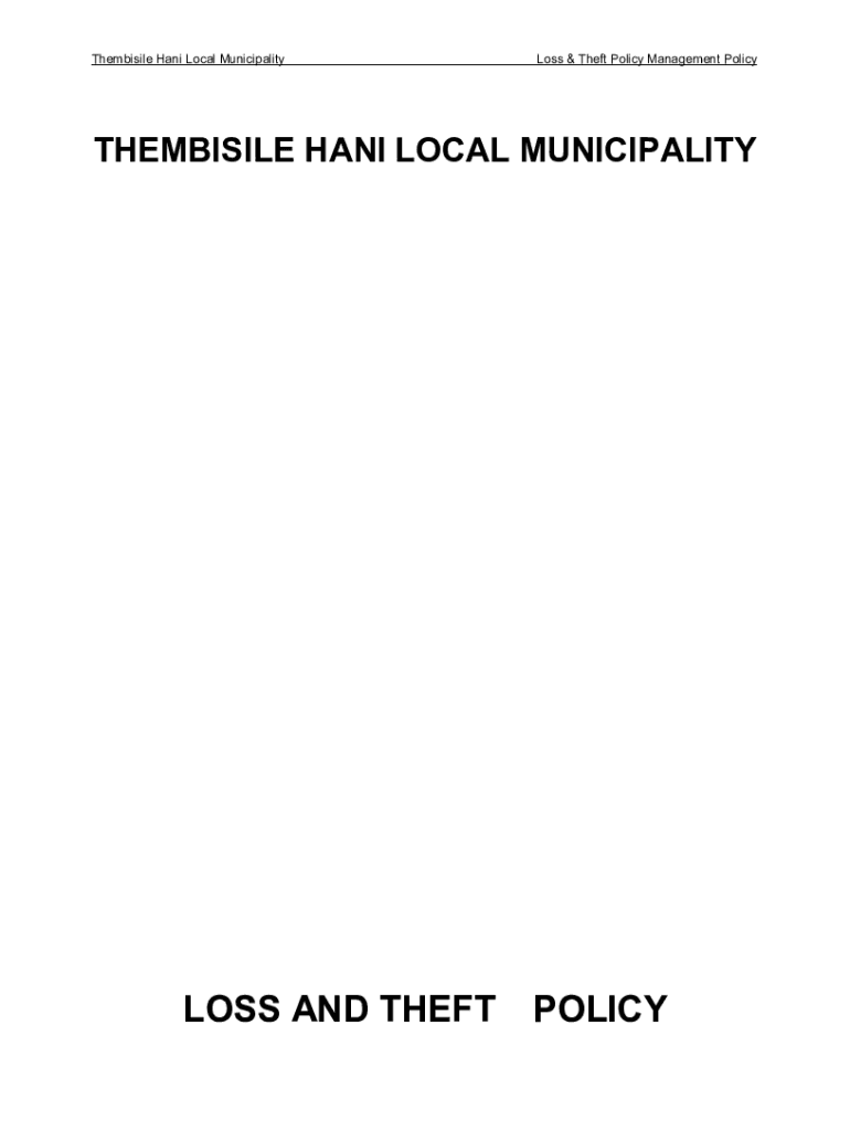 Thembisile Hand Local MunicipalityLoss & Theft Policy Management PolicyTHEMBISILE HAND LOCAL MUNICIPALITYLOSS AND THEFTPOLICYThembisile Hand Local MunicipalityLoss & Theft Policy Management PolicyTABLE
