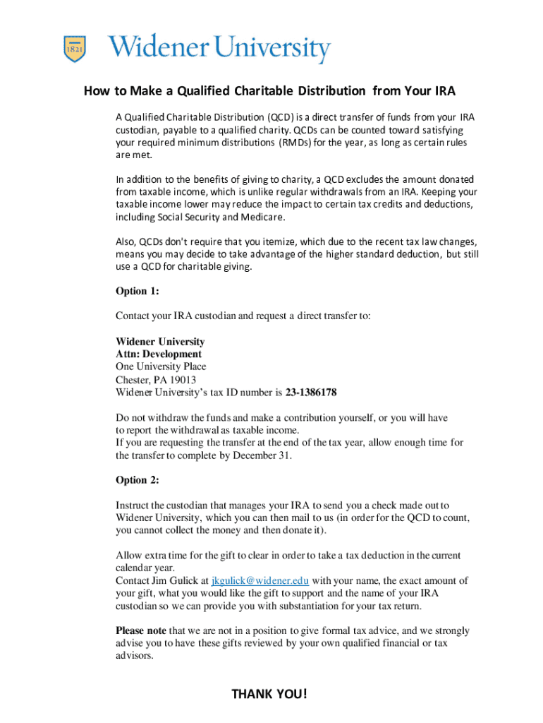 Get the free How do I take a qualified charitable distribution (QCD) - give widener