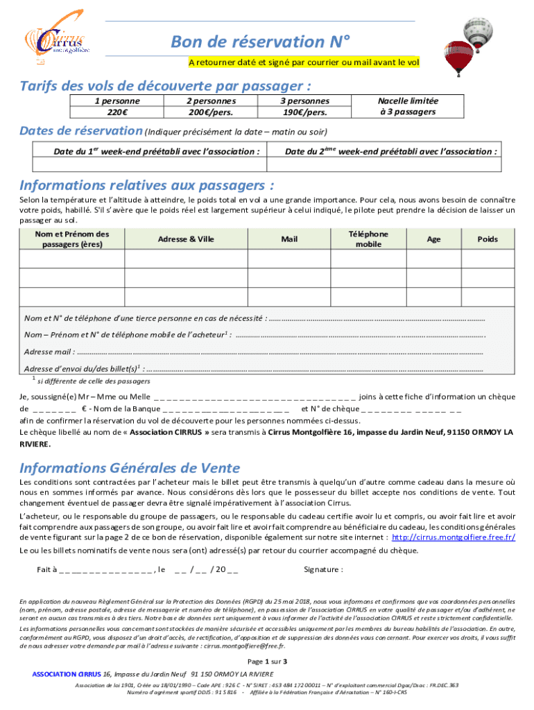 On de reservation N A returner DAT et sign par courier of mail savant LE votaries DES vols DE converted par passage : 1 personnel 2202 personnel 200/peers.3 personnel 190/peers. Nacelle limited 3