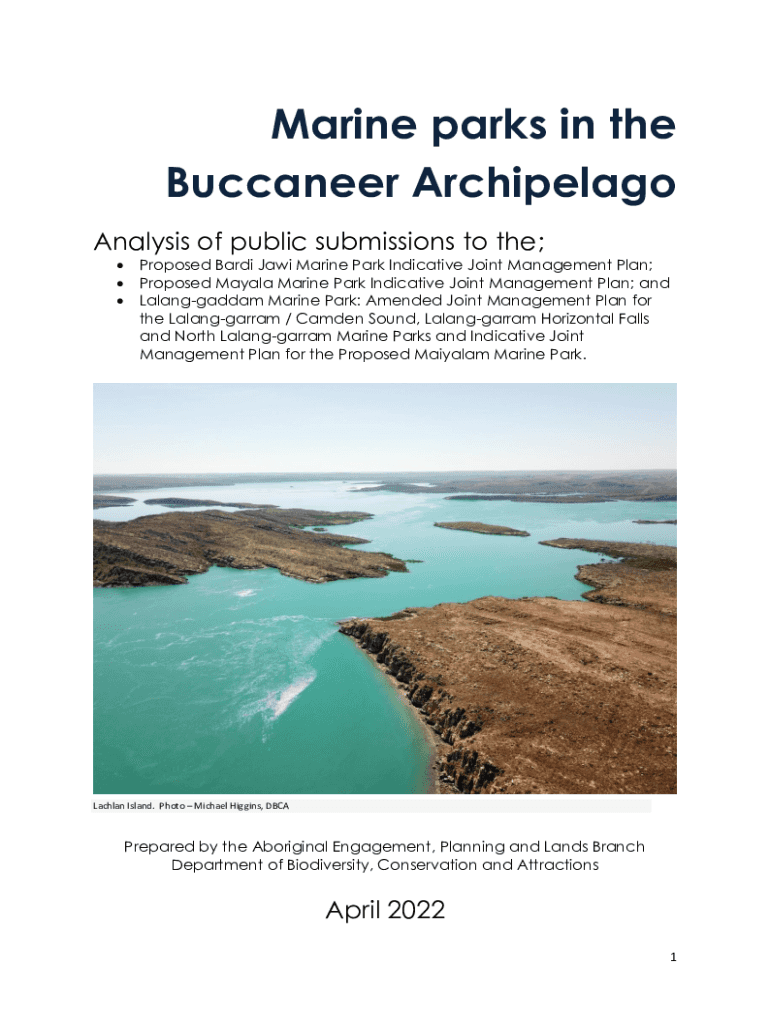 Marine parks in the Buccaneer Archipelago Analysis of public submissions to the; Proposed Bard Jaw Marine Park Indicative Joint Management Plan; Proposed Ayala Marine Park Indicative Joint Management