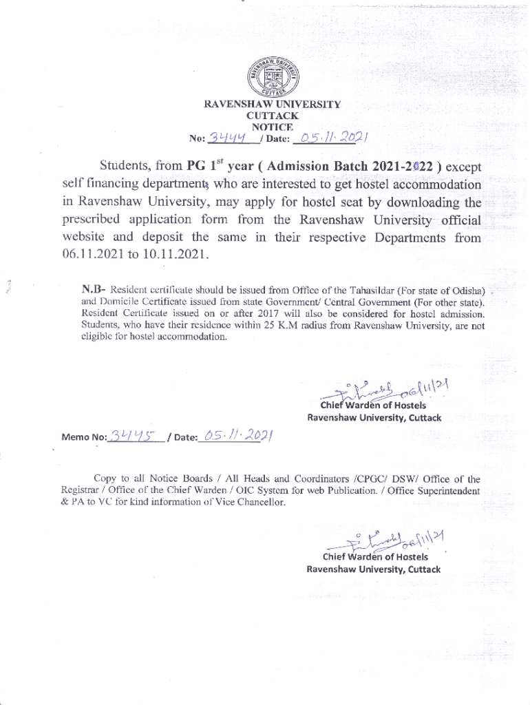 CRENSHAW UNIVERSITY HOSTEL APPLICATION FORM (For PG Students 202122 Admission Batch) DOCUMENTS TO BE SUBMITTED Self Attested photocopy of Residence Certificate from competent authority. Self attested