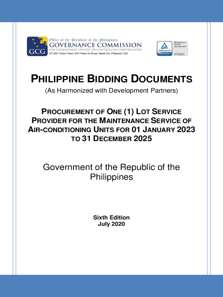PHILIPPINE BIDDING DOCUMENTS (As Harmonized with Development Partners)PROCUREMENT OF ONE (1) LOT SERVICE PROVIDER FOR THE MAINTENANCE SERVICE OF AIR-CONDITIONING UNITS FOR 01 JANUARY 2023 TO 31 DECEMBER