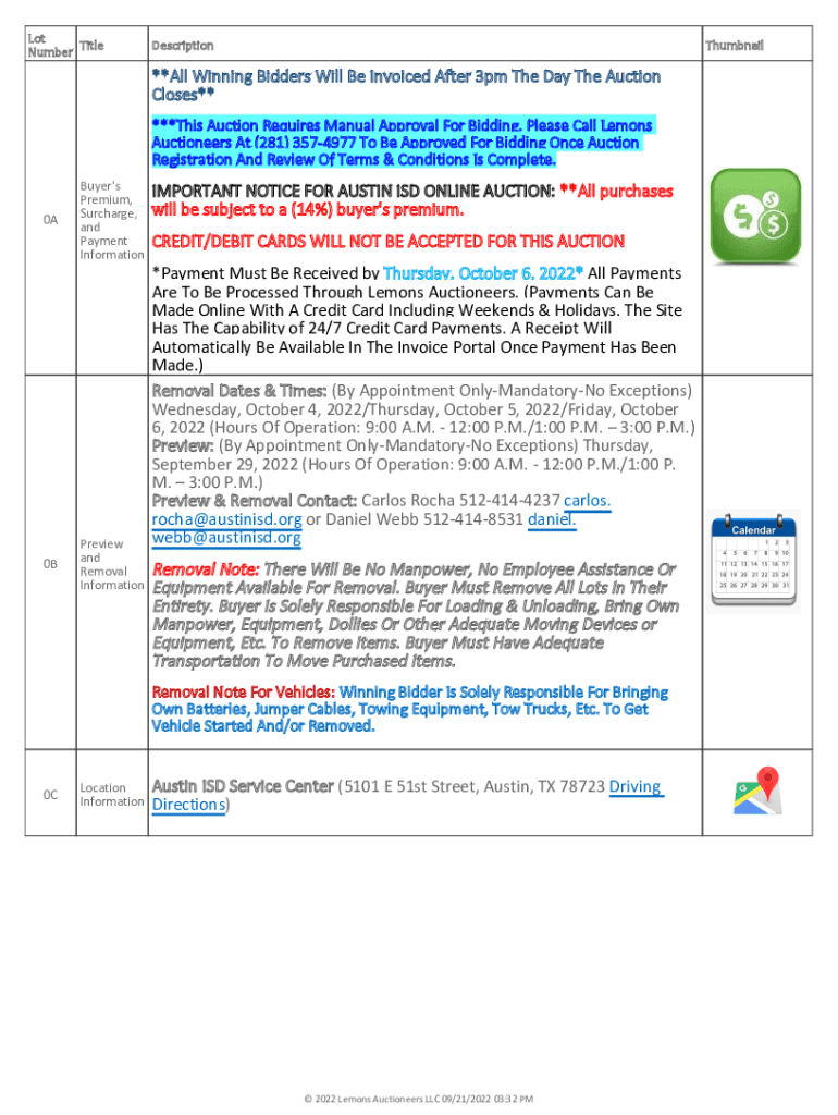 Lot Title NumberDescriptionThumbnail**All Winning Bidders Will Be Invoiced After 3pm The Day The Auction Closes** ***This Auction Requires Manual Approval For Bidding. Please, Call Lemons Auctioneers