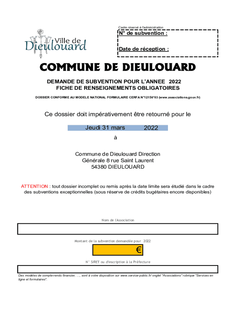 DEMAND DE SUBVENTION POUR L\'ANNE 2022