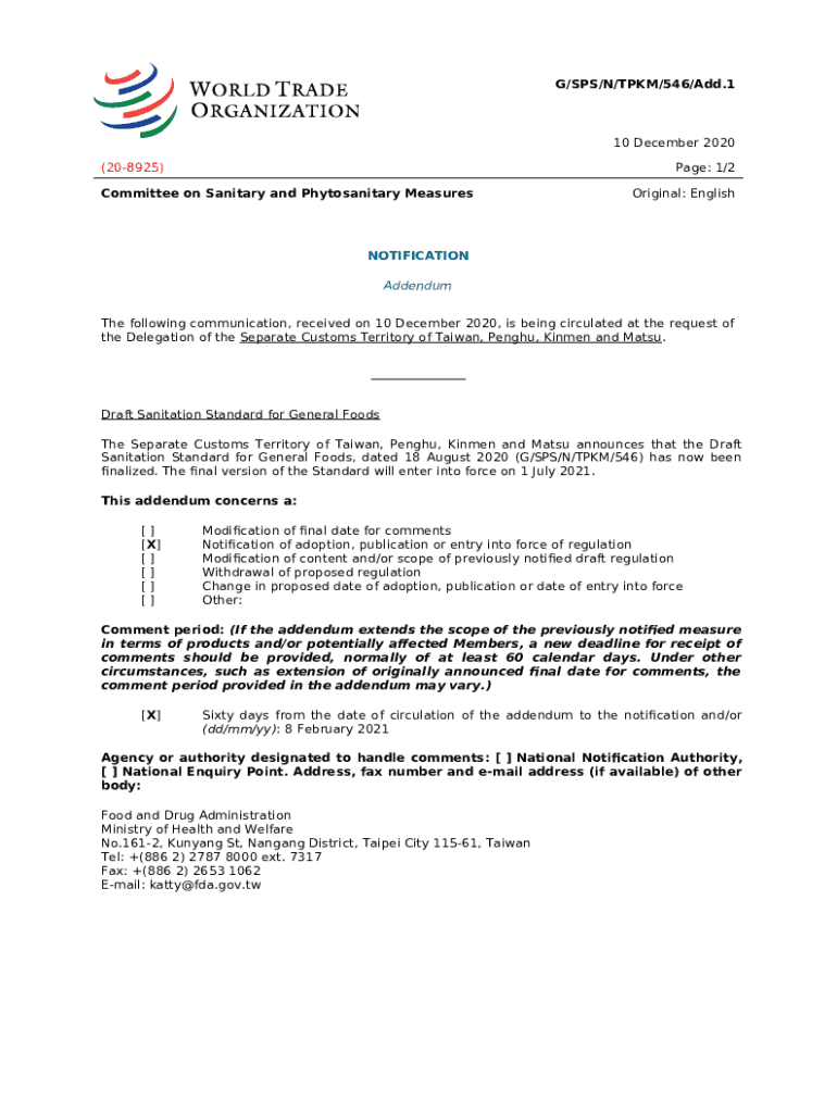 What is G/TBT/N/TPKM/437/Add.2 - WTO Documents Online Form?