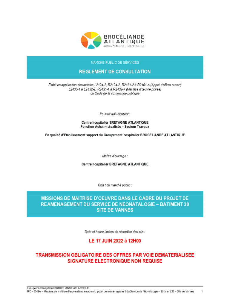 Any individual or organization involved in the mission or project is required to file reglement de consultation missions.
