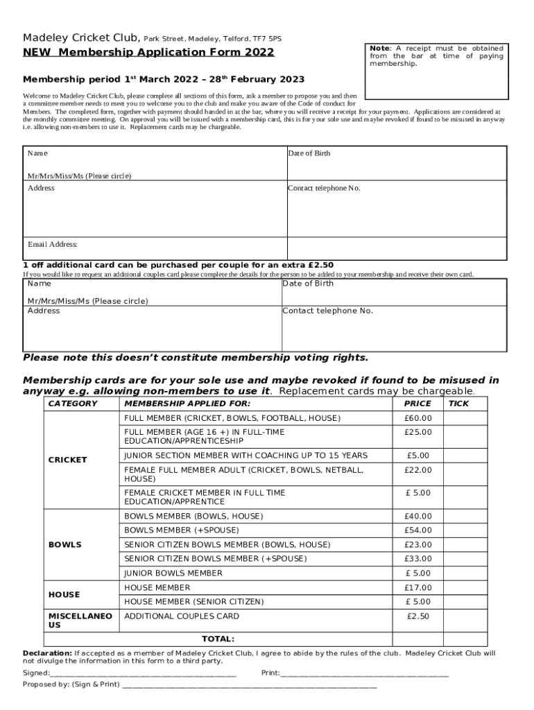 Template renewal / new membership s 2022 - Madeley Cricket Club instructions