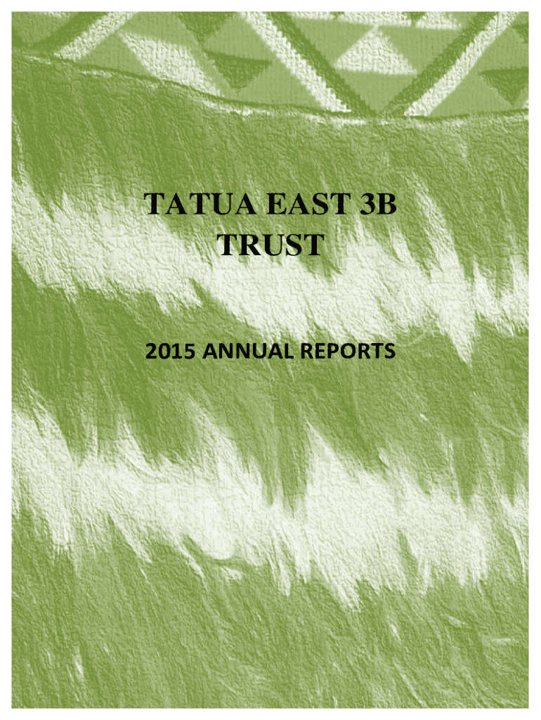 TATUM EAST 3B TRUST 2015ANNUALREPORTS Tatum East 3B TrustDIRECTORY TRUSTEES: ChrisHABIB (Chairman)EmeryHABIBGloriaMcLAUGHLINDenisePAULSECRETARYPETER FAULKNERBANKERSBANK OF NEW ZEALANDOFFICEDELOITTE