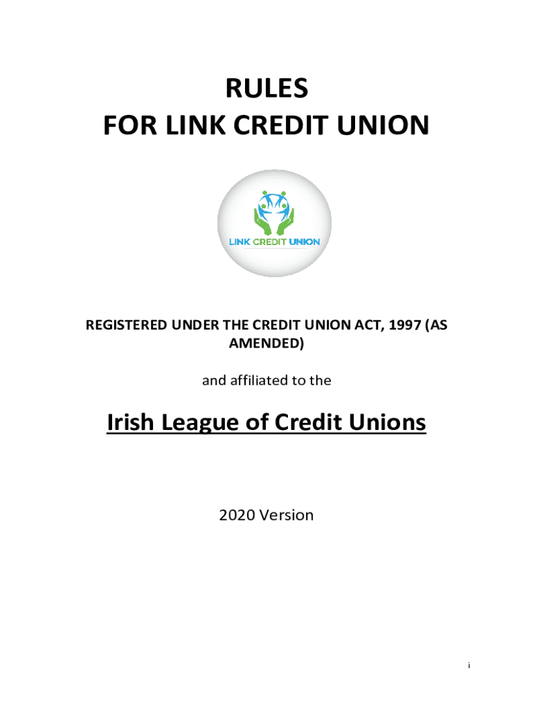 RULES FOR LINK CREDIT UNREGISTERED UNDER THE CREDIT UNION ACT, 1997 (AS AMENDED) and affiliated to the Irish League of Credit Unions2020 VersioniPREFACE CREDIT UNION OPERATING PRINCIPLES Statement