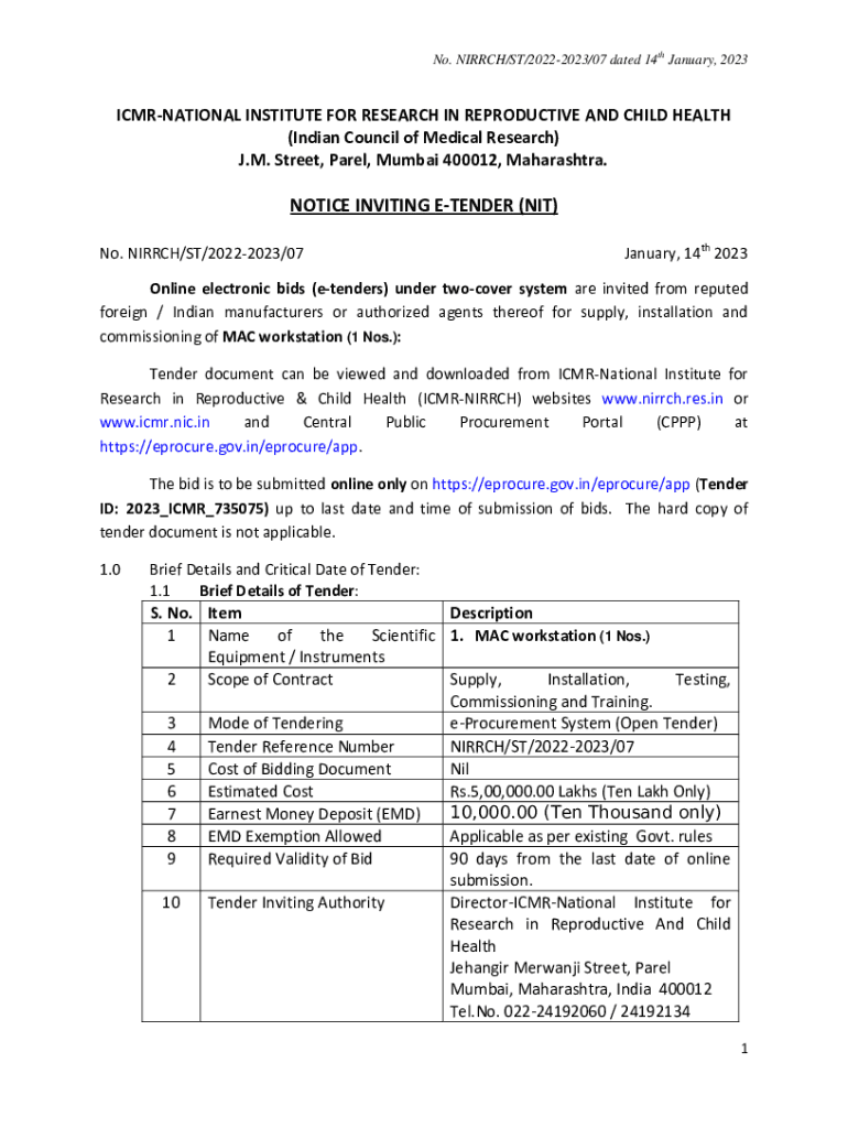 Get the free NOTICE INVITING E-TENDER (NIT)