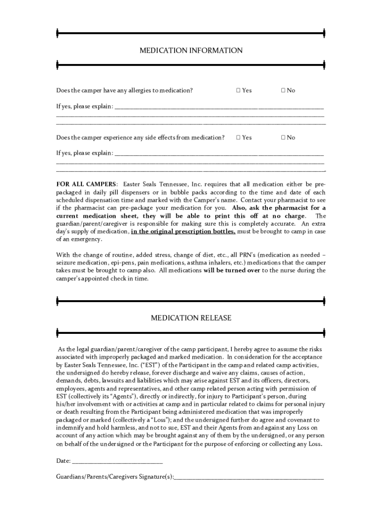 MEDICATION INFORMATIONDoes the camper have any allergies to medication? Yes Coif, please explain: ___ ___ ___ Does the camper experience any side effects from medication? Yes Coif, please explain: