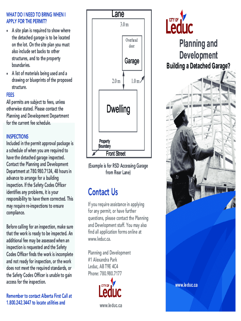 WHAT DO I NEED TO BRING WHEN I APPLY FOR THE PERMIT?3.0 MA site plan is required to show where the detached garage is to be located on the lot. On the site plan you must also include set backs to