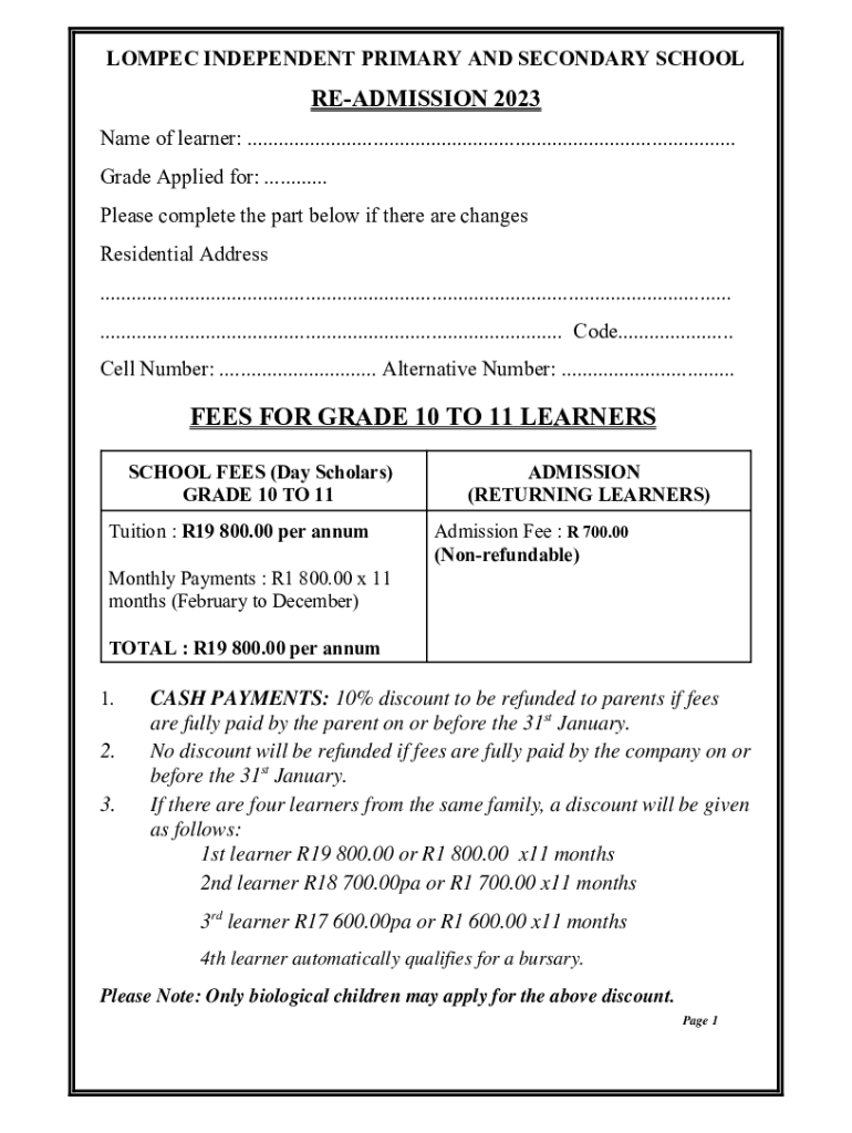 LOMPOC INDEPENDENT PRIMARY AND SECONDARY SCHOOLREADMISSION 2023 Name of learner: ............................................................................................. Grade Applied for: ............