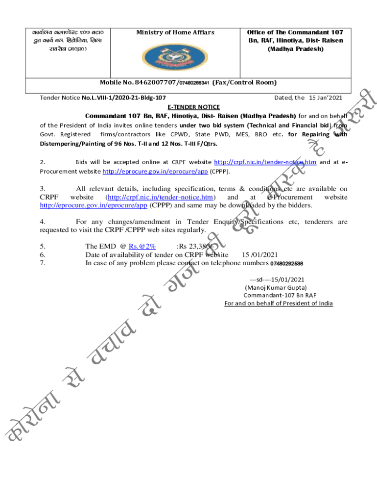DK;key; deck. SUV 107 cVk0 near DK;Z CY] flukier;k] fly JK;LSU e0iz0Ministry of Home AffiarsOffice of The Commandant 107 In, RAF, Hinting, Dist Raised (Madhya Pradesh)Mobile No. 8462007707/07480266341