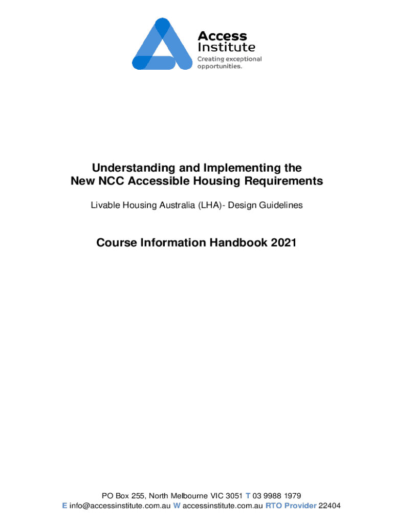 Understanding and Implementing the New NCC Accessible Housing Requirements Livable Housing Australia (LA) Design GuidelinesCourse Information Handbook 2021PO Box 255, North Melbourne VIC 3051 T 03