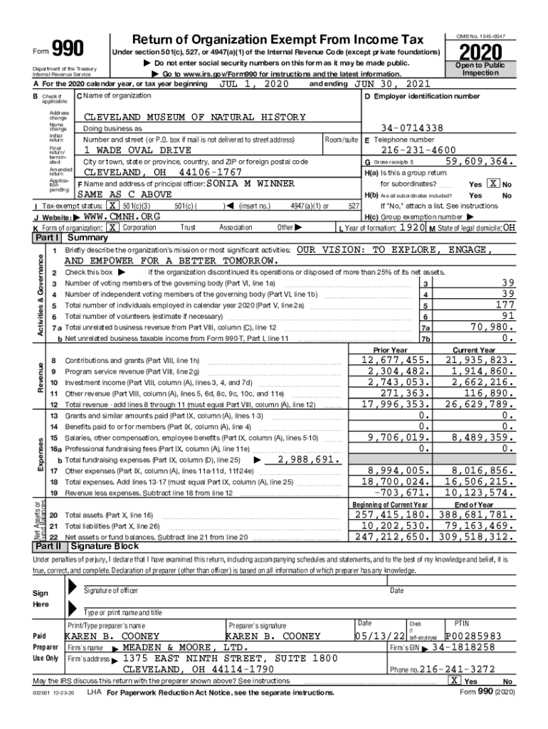 Form990Return of Organization Exempt From Income Tax OMB No. 15450047| Do not enter social security numbers on this form as it may be made public. Open to Public InspectionDepartment of the Treasury