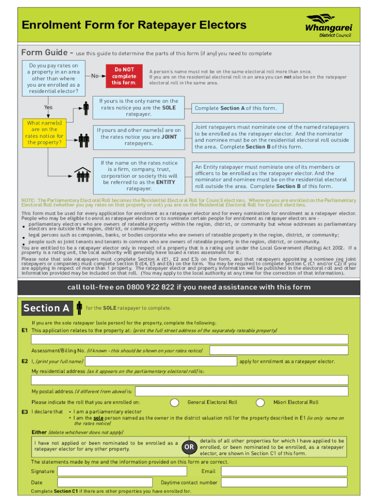Enrollment Form for Ratepayer Electors Form Guide use this guide to determine the parts of this form (if any) you need to complete Do you pay rates on a property in an area other than where you are