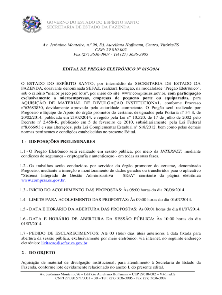 Fax (27) 36363907 Tel (27) 36363905EDITAL