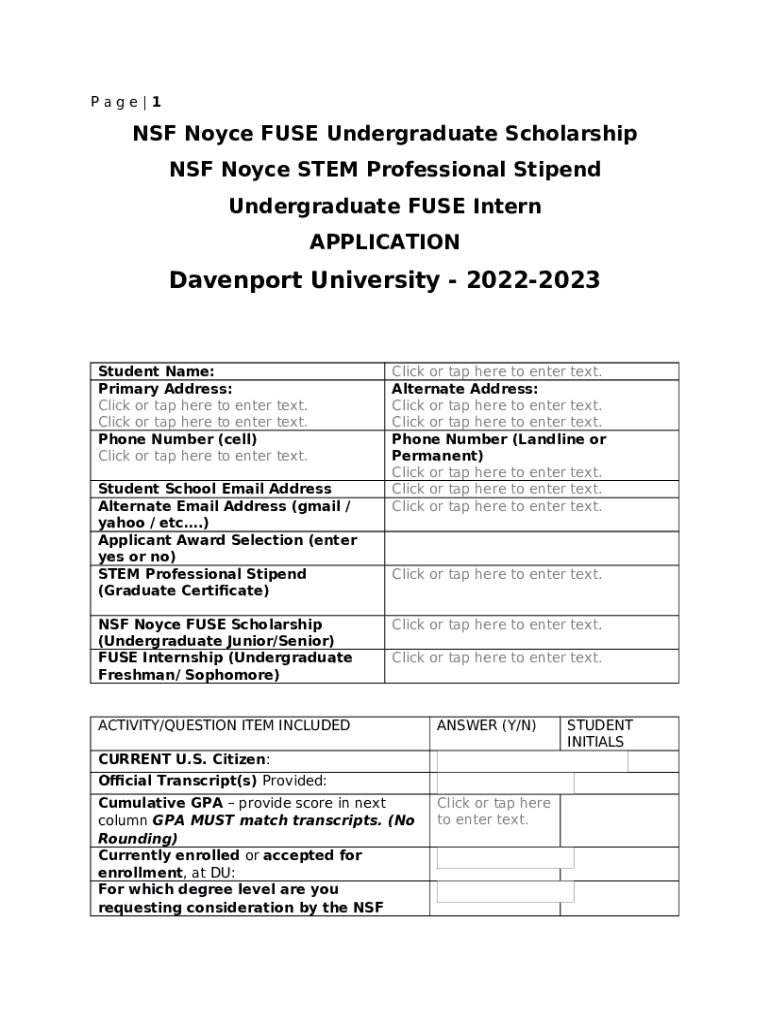 Instructions for the Davenport Offers STEM Students Full-Ride Scholarships to ... form