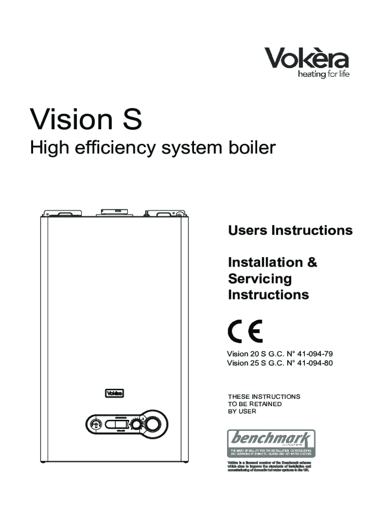 Vision High efficiency system boilermakers Instructions Installation & Servicing InstructionsVision 20 S G.C. N 4109479 Vision 25 S G.C. N 4109480THESE INSTRUCTIONS TO BE RETAINED BY USERVokra is