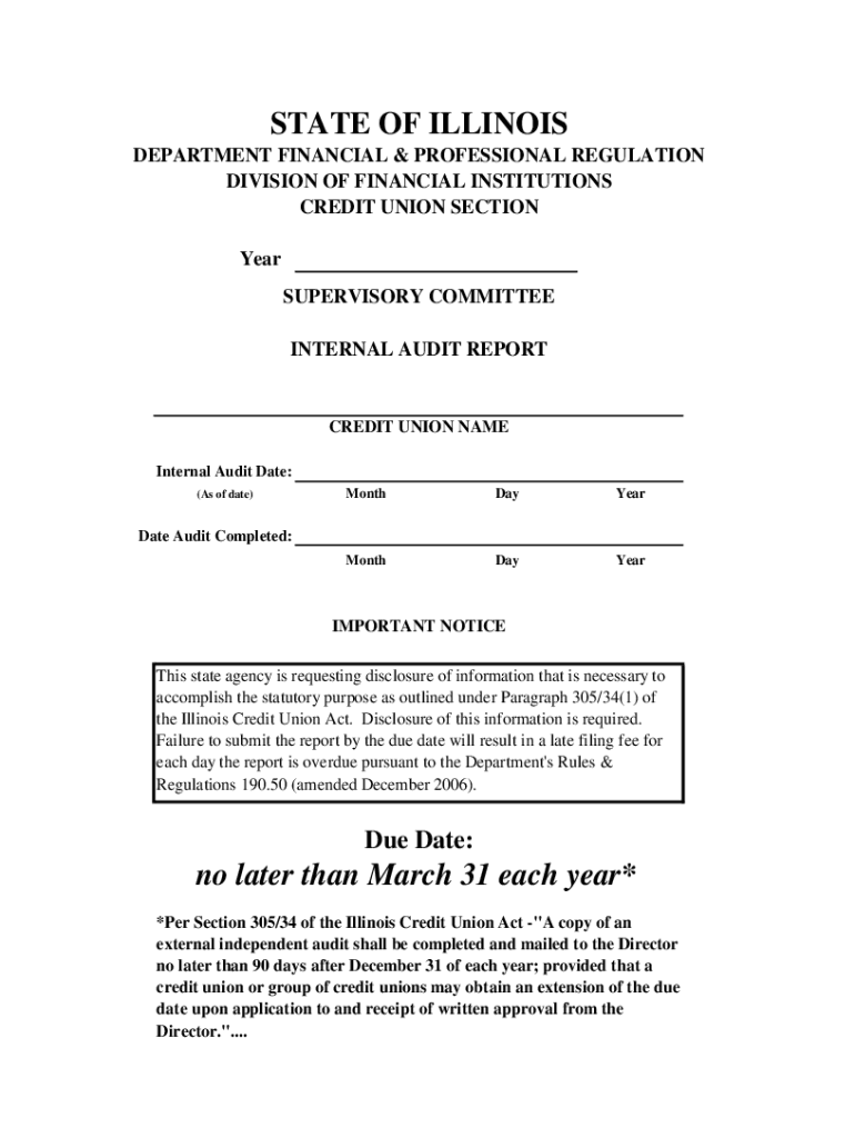 INTERNAL AUDIT REPORTCREDIT UNION NAME