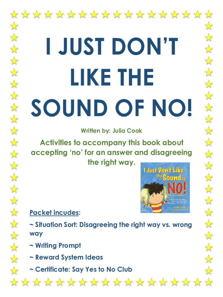 I JUST DON'T LIKE THE SOUND OF NO! Written by: Julia CookActivities to accompany this book about accepting no for an answer and disagreeing the right way. Packet includes: Situation Sort: Disagreeing