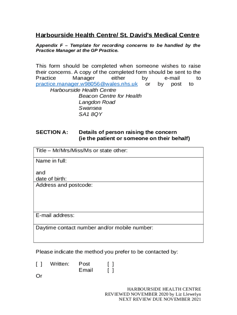 The St David's Family Practice is a writable document which can be filled-out and signed for specific purpose. In that case, it is furnished to the relevant addressee in order to provide certain details of certain kinds. The completion and signing is available manually or using a suitable application like PDFfiller. These services help to send in any PDF or Word file without printing out. It also allows you to edit it depending on your needs and put an official legal e-signature. Upon finishing, you send the St David's Family Practice to the respective recipient or several recipients by mail or fax. PDFfiller has got a feature and options that make your document of MS Word extension printable. It provides a number of settings when printing out appearance. It does no matter how you will distribute a document - in hard copy or by email - it will always look well-designed and firm. To not to create a new file from the beginning again and again, make the original Word file into a template. Later, you will have an editable sample.