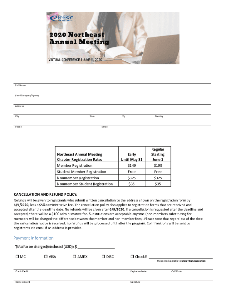 ENERGY BAR ASSOCIATION 2020 NORTHEAST CHAPTER ANNUAL MEETING AGENDADATE & LOCATION1:00 PM June 11, 2020Welcome: Glenn Camus, President, Northeast Chapter, EBA1:00 pm 5:00 pm Keynote Speaker: Jason