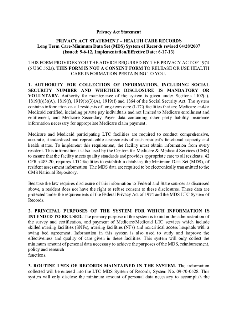 Healthcare providers and organizations are required to file privacy act statements for health care.