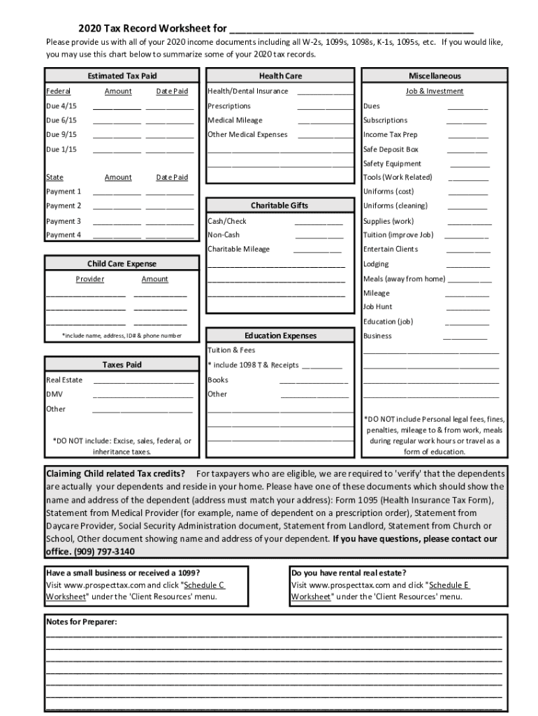 Please provide us with all of your 2020 income documents including all W2s, 1099s, 1098s, K1s, 1095s, etc. If you would like,