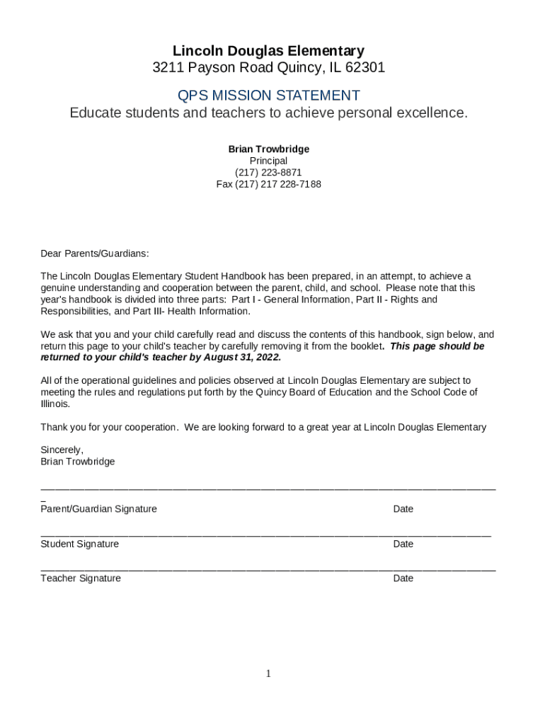 The lincoln-douglas elementary school (k - Illinois Report Card is a writable document you can get completed and signed for certain purposes. In that case, it is provided to the relevant addressee in order to provide some info of certain kinds. The completion and signing is possible manually in hard copy or using an appropriate solution e. g. PDFfiller. These services help to submit any PDF or Word file without printing them out. It also allows you to edit it for your needs and put a legal digital signature. Once done, the user ought to send the lincoln-douglas elementary school (k - Illinois Report Card to the respective recipient or several of them by email and even fax. PDFfiller provides a feature and options that make your document of MS Word extension printable. It includes different settings when printing out appearance. It does no matter how you'll file a form after filling it out - physically or electronically - it will always look neat and firm. To not to create a new file from scratch over and over, turn the original form into a template. After that, you will have an editable sample.