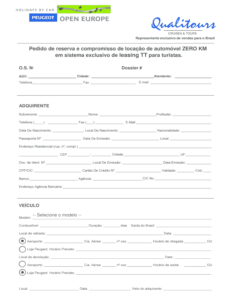 Obtenha o gratuito Ficha para solicita o de reserva - PEUGEOT - OPEN EUROPE by ...