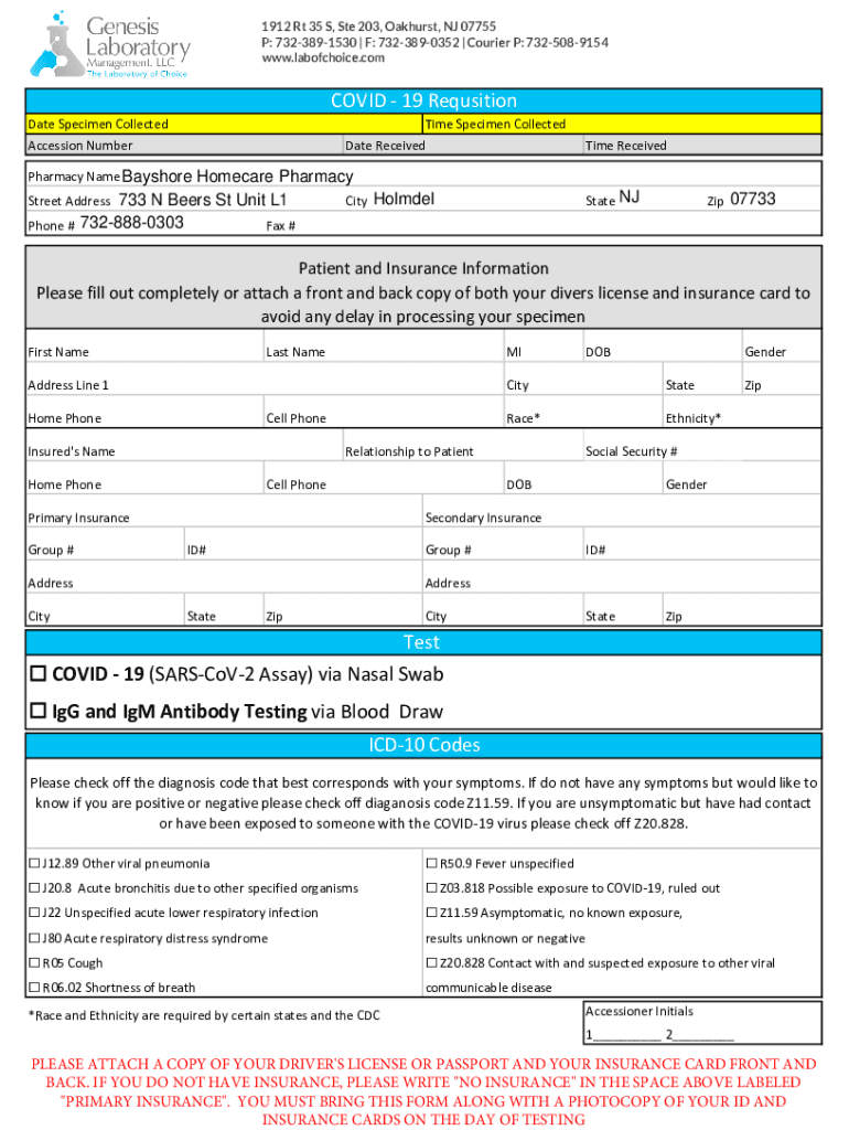 1912 Rt 35 S, Ste 203, Pankhurst, NJ 07755 P: 7323891530 IF: 7323890352 I Courier P: 7325089154 www.labofchoice.comCOVID 19 Requisition Date Specimen Collected Accession Summer Specimen Collected