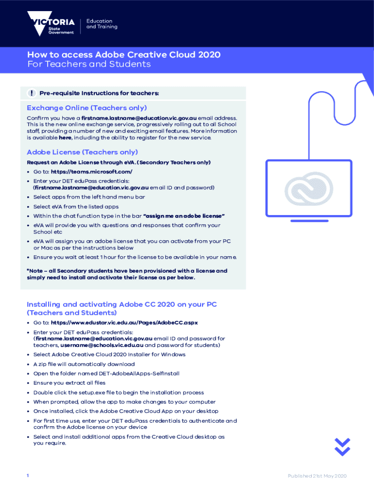 How to access Adobe Creative Cloud 2020 For Teachers and Students ! Prerequisite Instructions for teachers:Exchange Online (Teachers only) Corm you have a rstname.lastname@education.vic.gov.au email