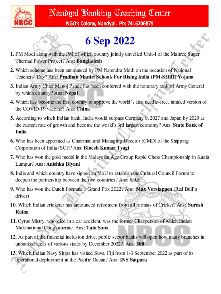 6 Sep 2023 1. PM Mode along with the PM of which country jointly unveiled Units of the Mai tree Super Thermal Power Project? Ans: Bangladesh 2. Which scheme has been announced by PM Narendra Modi